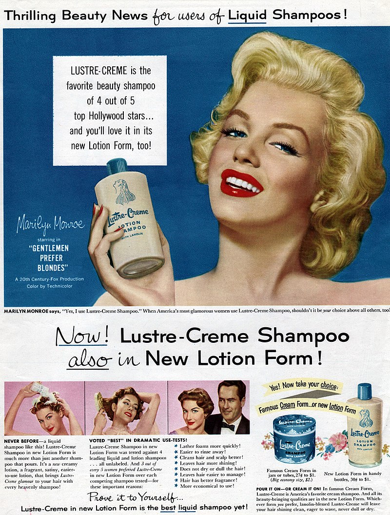 If America was to export the democracy of glamour into post-war, impoverished Europe, the movies could be its shop window ... Marilyn Monroe, with her all American attributes and streamlined sexuality, came to epitomise in a single image this complex interface of the economic, the political, and the erotic. By the mid-1950s, she stood for a brand of classless glamour, available to anyone using American cosmetics, nylons and peroxide.